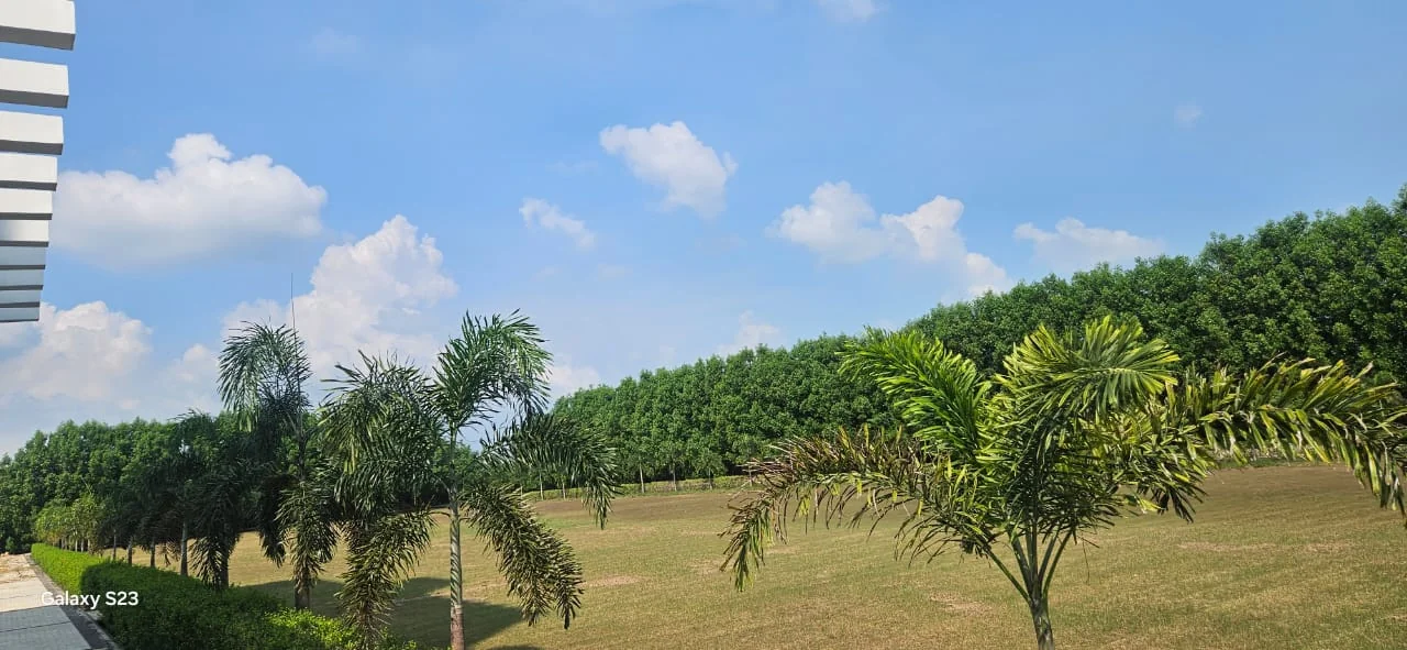 🌿 Lush Green Lawn – Perfect for open-air functions and wedding rituals.